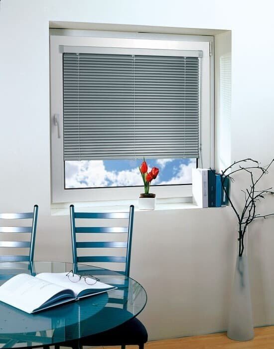 Кассетные жалюзи плотно прилегают к стеклу