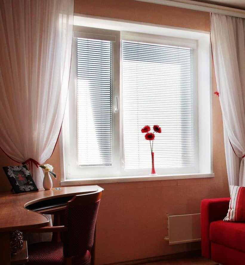 - Регулировка света. Система управления жалюзи позволяет регулировать световой поток, а в закрытом положении – блокировать прохождение солнечных лучей.